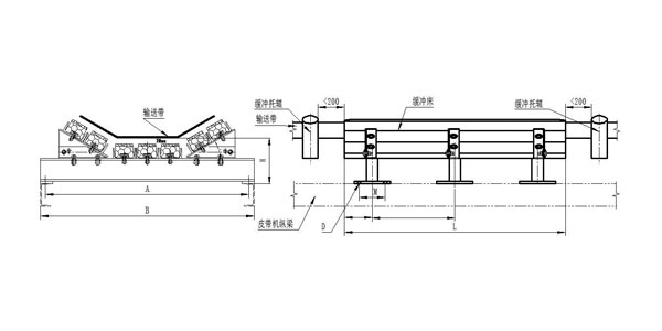 2.用戶在訂貨時注明:帶寬、緩沖條長度L、槽型角θ、帶面高度H、中間架孔距A、中間架孔徑d、地腳孔距M。